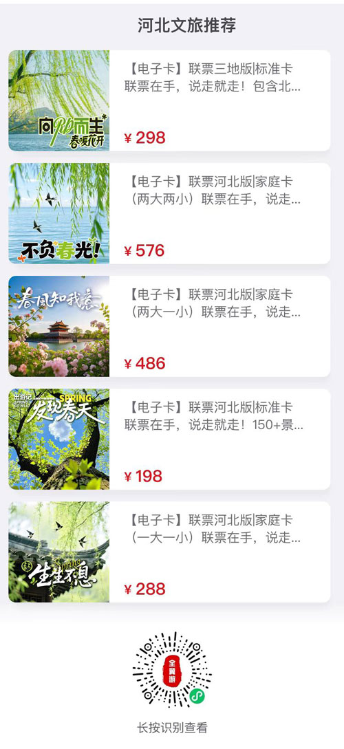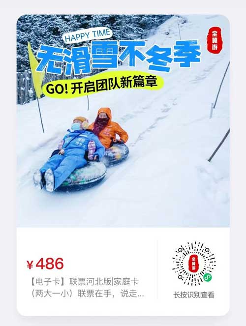 购卡:扫描或长按识别下方专属优惠海报,选择 “河北文旅一卡通家庭卡(两大一小)”,支付 486 元即可获得电子卡。