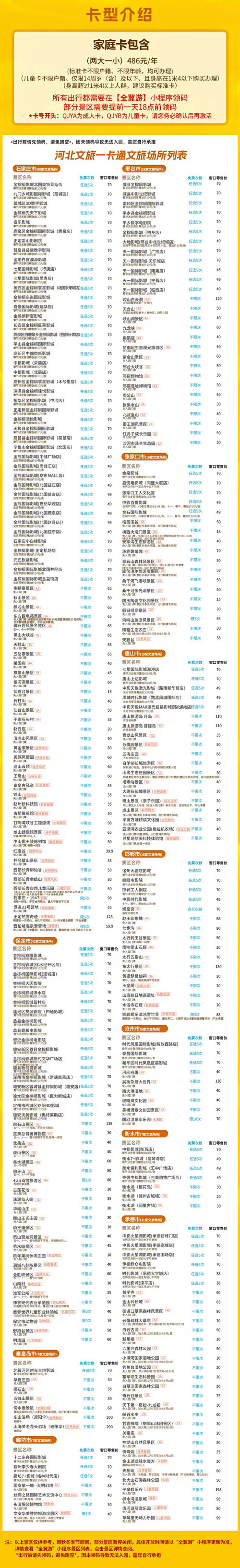 先算一笔账:这张家庭卡(两大一小)只要 486 元 / 年,平均下来每天不到 1 块 5,就能解锁全省超 300 家文旅场所的免费或优惠权益。