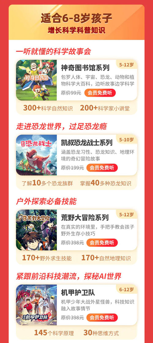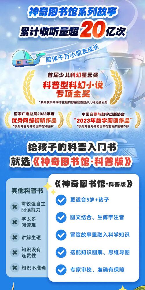 • 冒险剧情 + 科学讲解,像 “中国版神奇校车”,越听越入迷