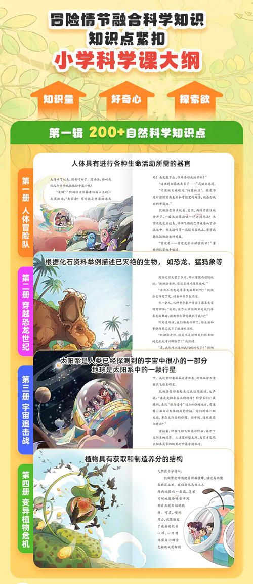 • 贴合小学科学课标,兼顾趣味性与知识性,理科思维从小培养