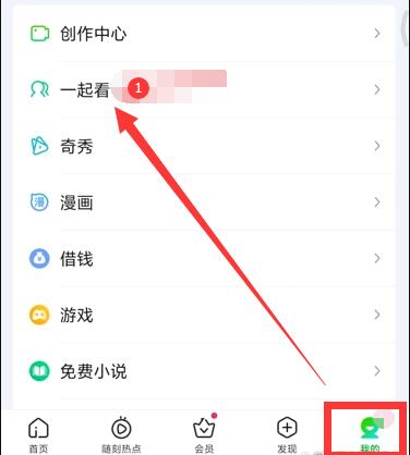 1、在爱奇艺APP我的页面中找到【一起看】。