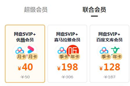 百度网盘联名会员卡优惠活动,有网盘+QQ超级会员、网盘+喜马拉雅、网盘+QQ音乐、网盘+快看漫画会员、网盘+百度文库、网盘+优酷会员、网盘+酷我音乐等。