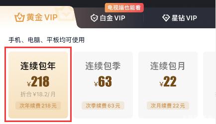 爱奇艺白金VIP会员官方开通价格268元/年;