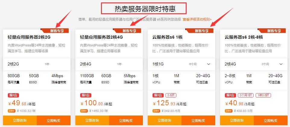 阿里云目前的活动比较花哨,新手想在阿里云上找到最优惠活动入门,往往难以下手,这里进行了筛选,你看到的服务器都是官网最低价格。